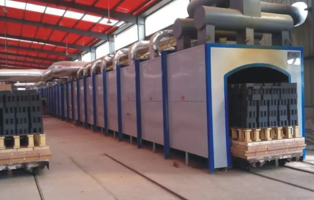 隧道窯在青磚青瓦行業(yè)中廣泛應(yīng)用,除了高效節(jié)能、自動(dòng)化度高等連續(xù)窯的特點(diǎn),同時(shí)因?yàn)楦G車裝載方式可以多層裝載,適用產(chǎn)品范圍較廣,合適的燒成周期,尤其適用于青磚厚重類制品。區(qū)別于傳統(tǒng)磚瓦隧道窯,現(xiàn)代隧道窯主要組成:窯體、窯車(窯具)、燃燒系統(tǒng)、排煙系統(tǒng)、冷卻系統(tǒng)、測(cè)控系統(tǒng)和附屬設(shè)備。